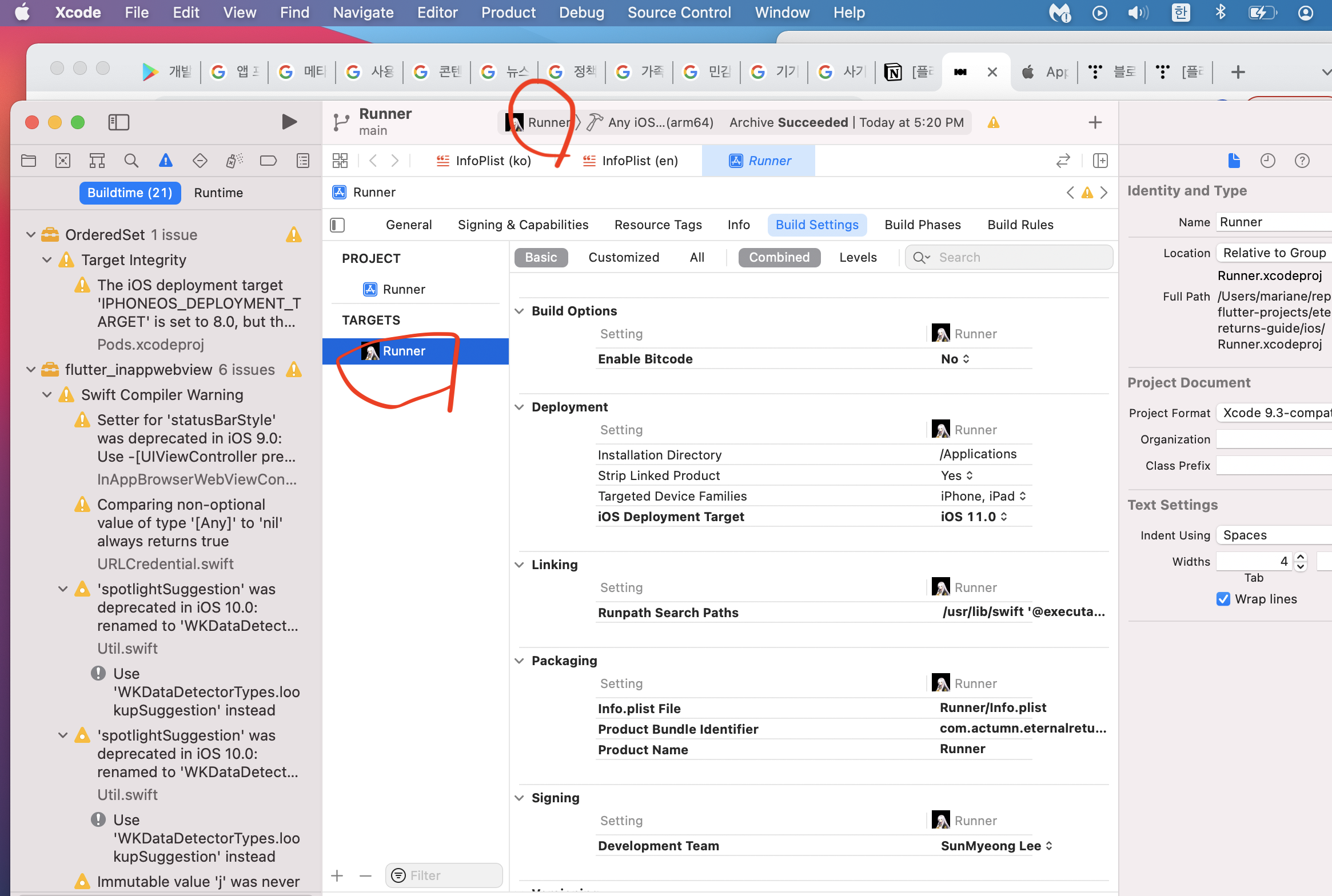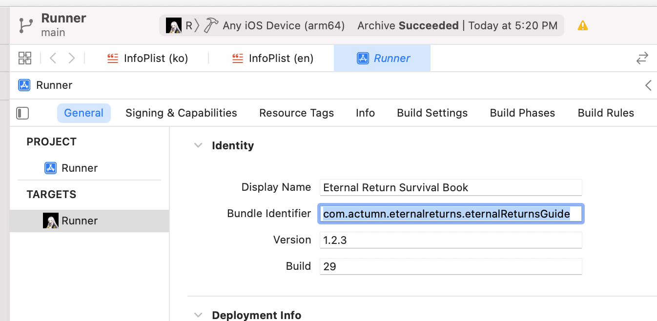 Bundle ID는 xcode에서 설정하는 아래의 Product Bundle Identifier를 입력하면 된다.
