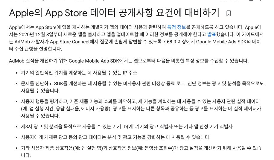 1. 식별자 기기: AdMob SDK가 광고를 제공하기위해, 광고 서빙을 위해 id를 수집한다.
