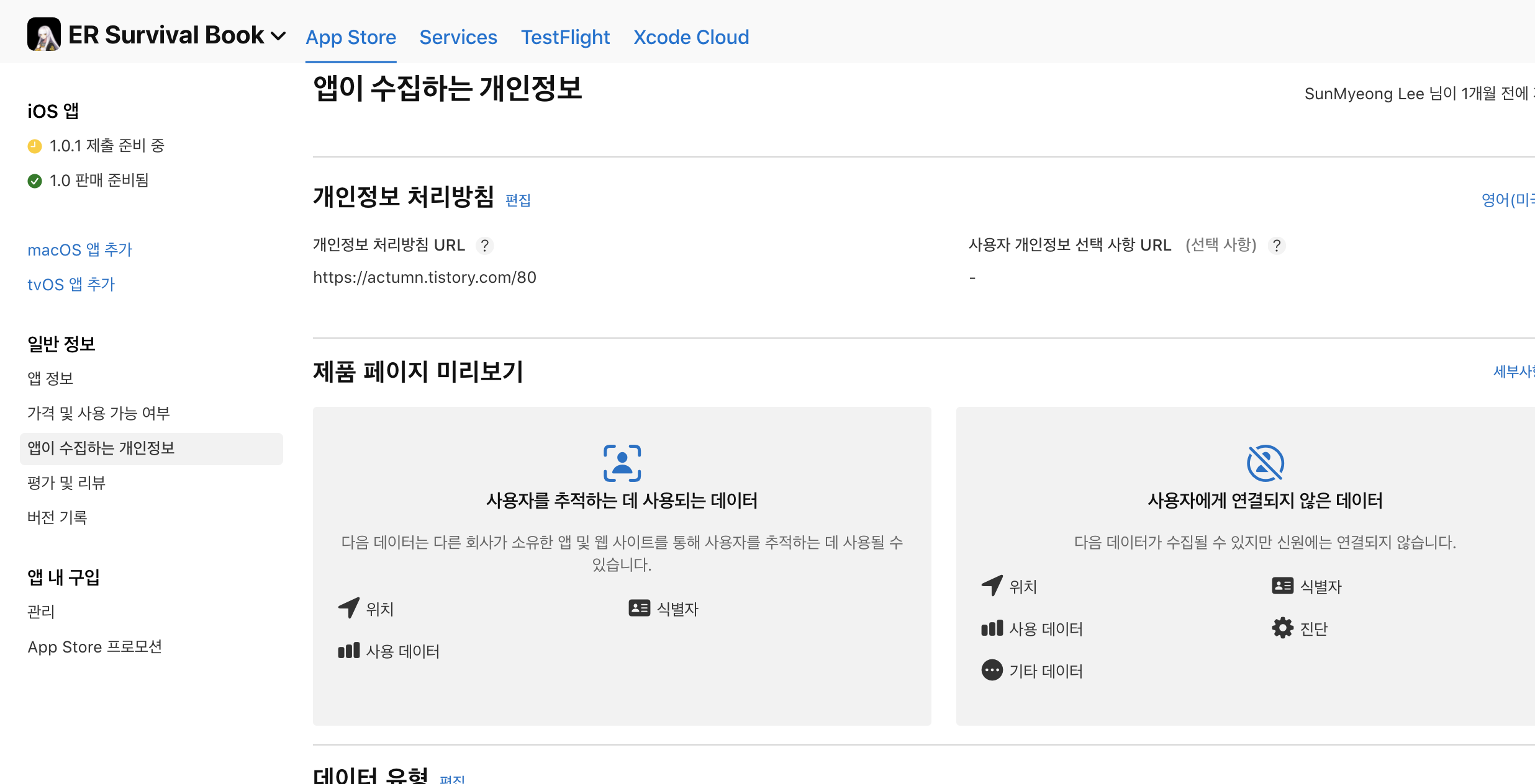 [App Store] > [앱이 수집하는 개인정보] 이동