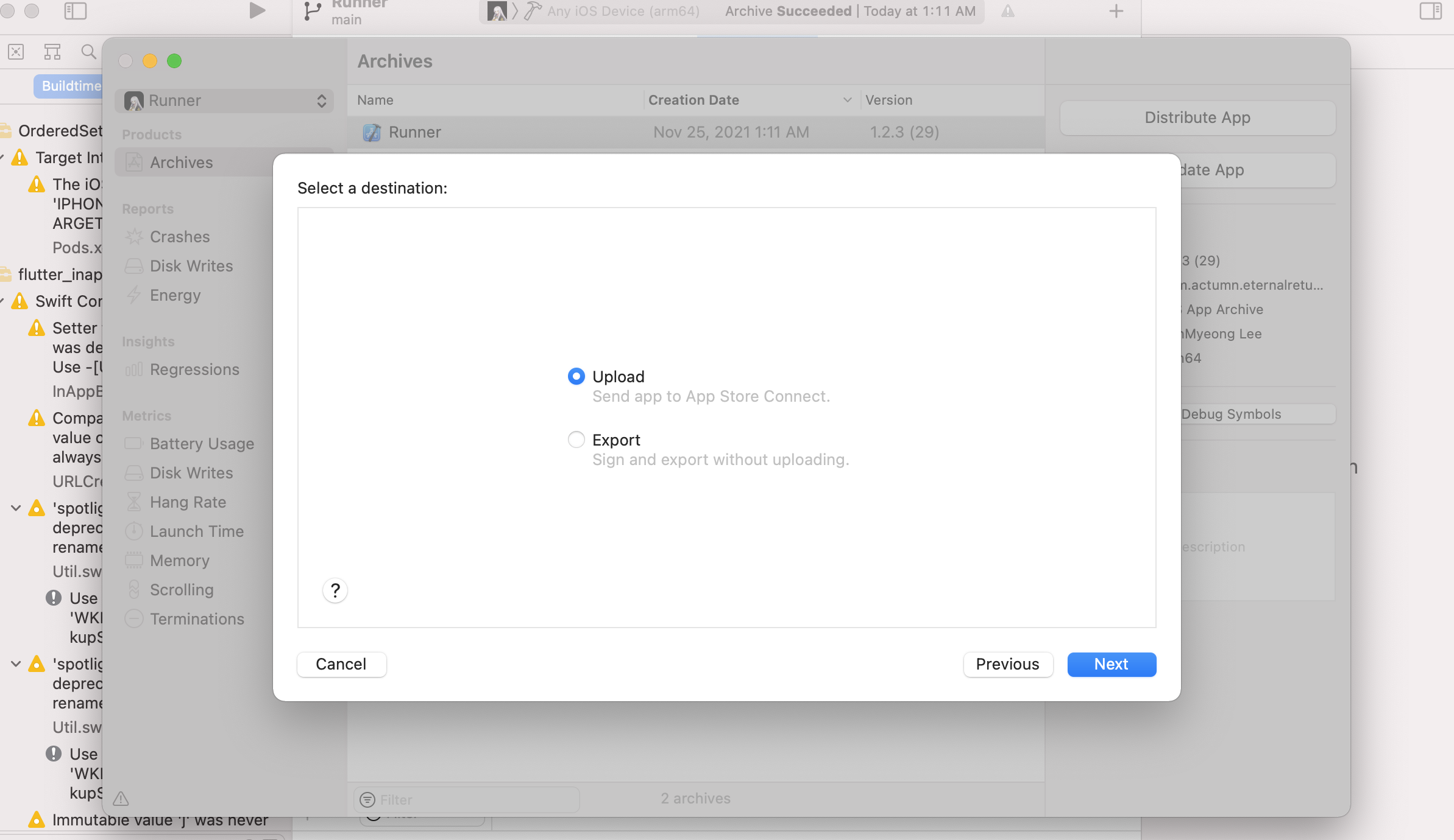 빌드한 앱을 올려야 하니까 Upload 선택 및 [Next]