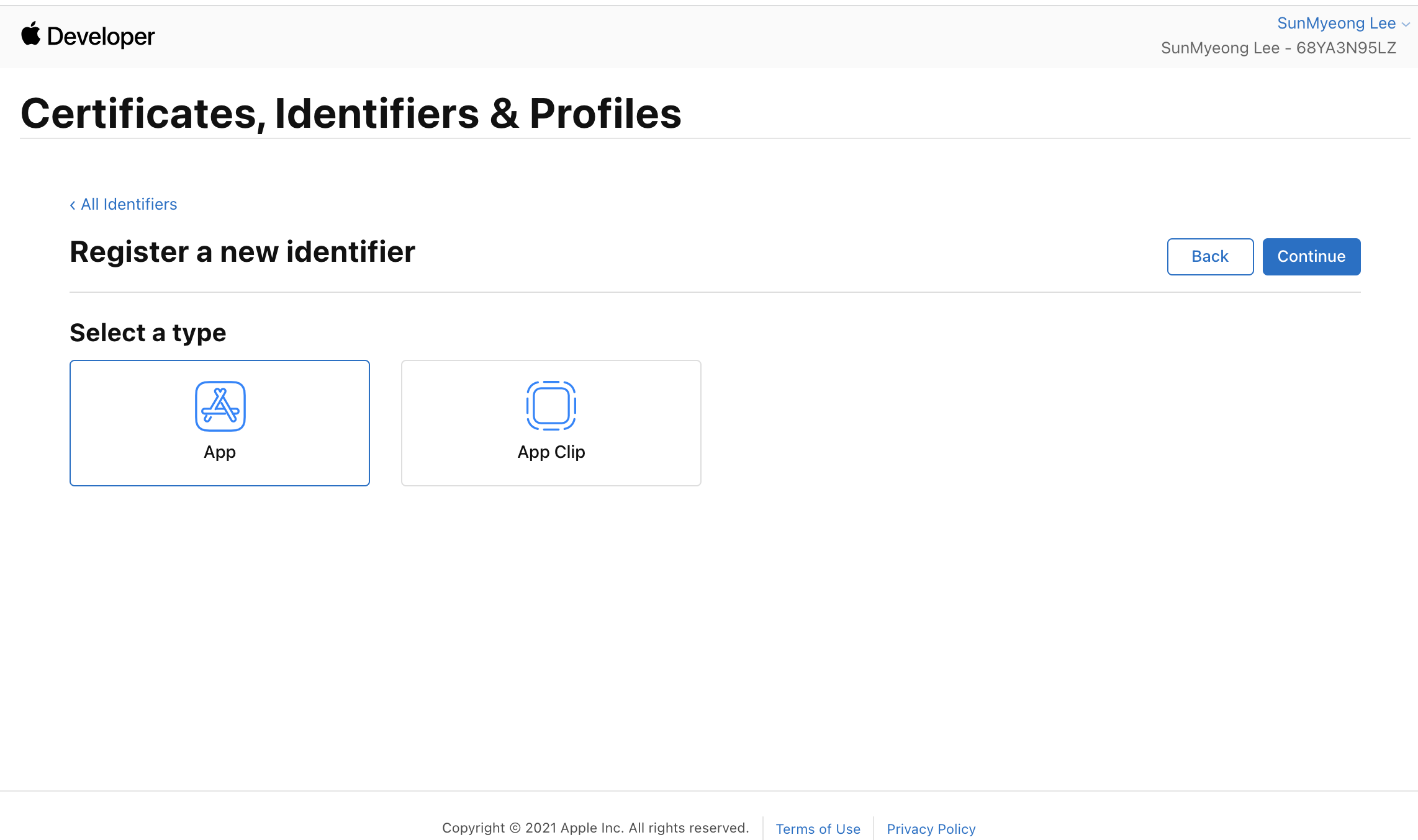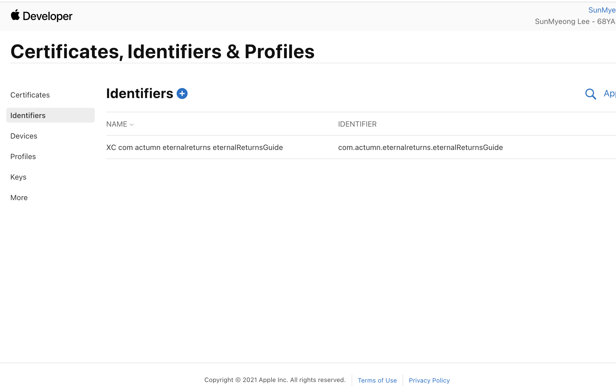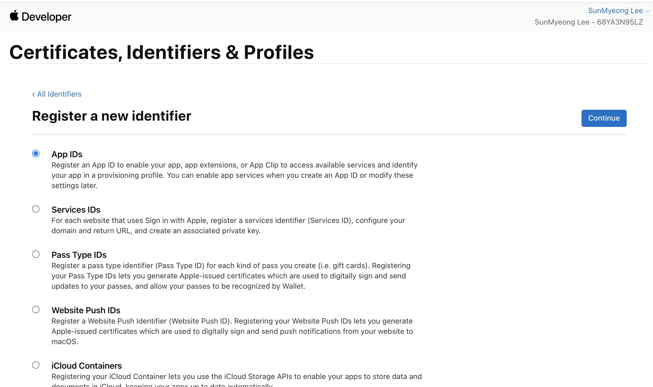 위에서 앱이 추가될때 마다 Identifier 를 추가하자.