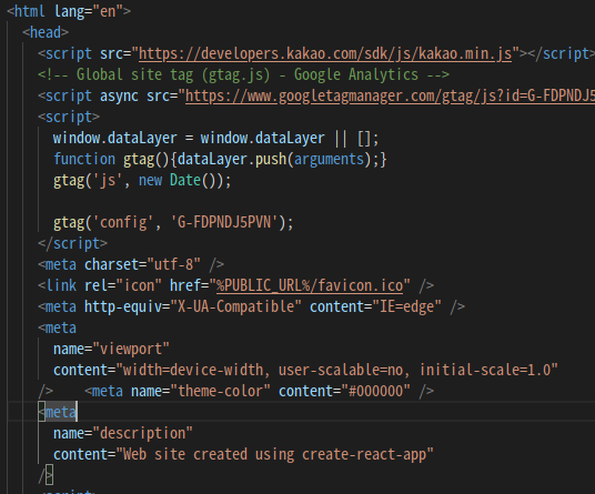위의 kakao sdk CDN을 public/index.html에 입력합니다.