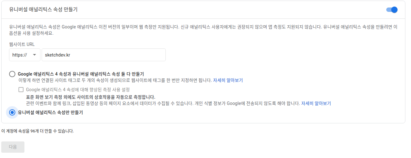 속성에서 유니버설 애널리틱스 속성을 사용해야합니다.