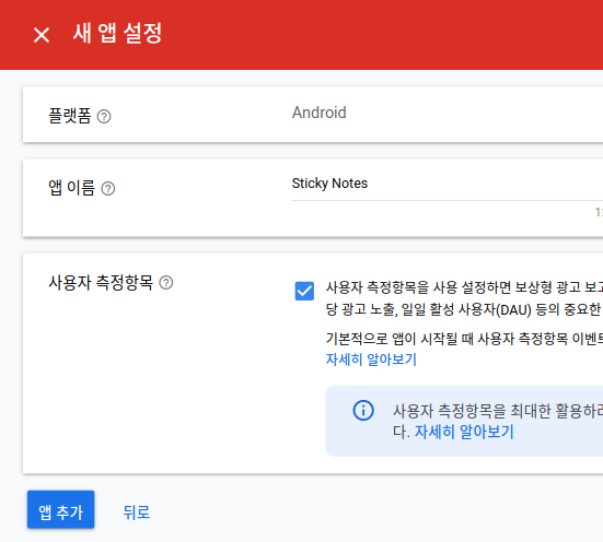 앱 추가를 하면 새 애드몹 앱이 추가된다.