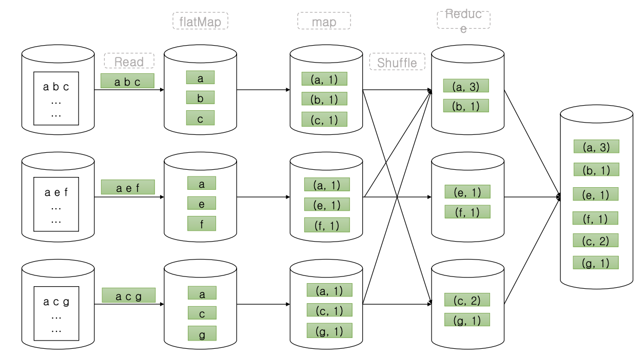서버가 많아지면서, 나눠서 처리한 부분을 합쳐야한다. (단어수 세기의 경우, 단어수 결과의 합)