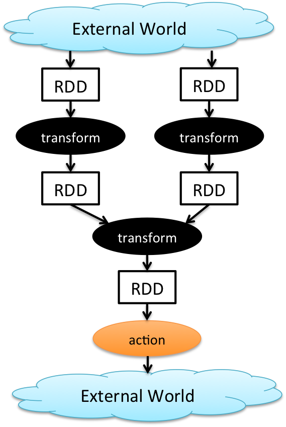 RDD가 안에 실제로 들어있는 것이 아닌, 데이터에 접근하는 함수가 존재.
